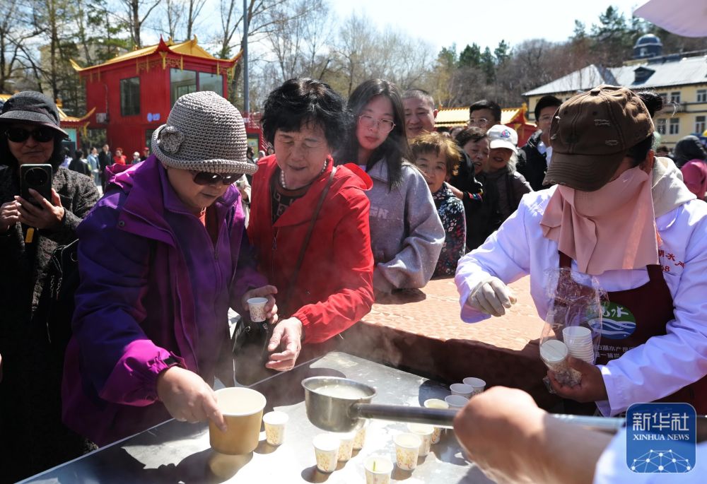 On April 20, tourists receive free fish soup at the "Lake Opening Season" event in Jingpohu Lake Scenic Area, Mudanjiang City, Heilongjiang Province. Xinhua News Agency (Photo by Zhang Chunxiang)
