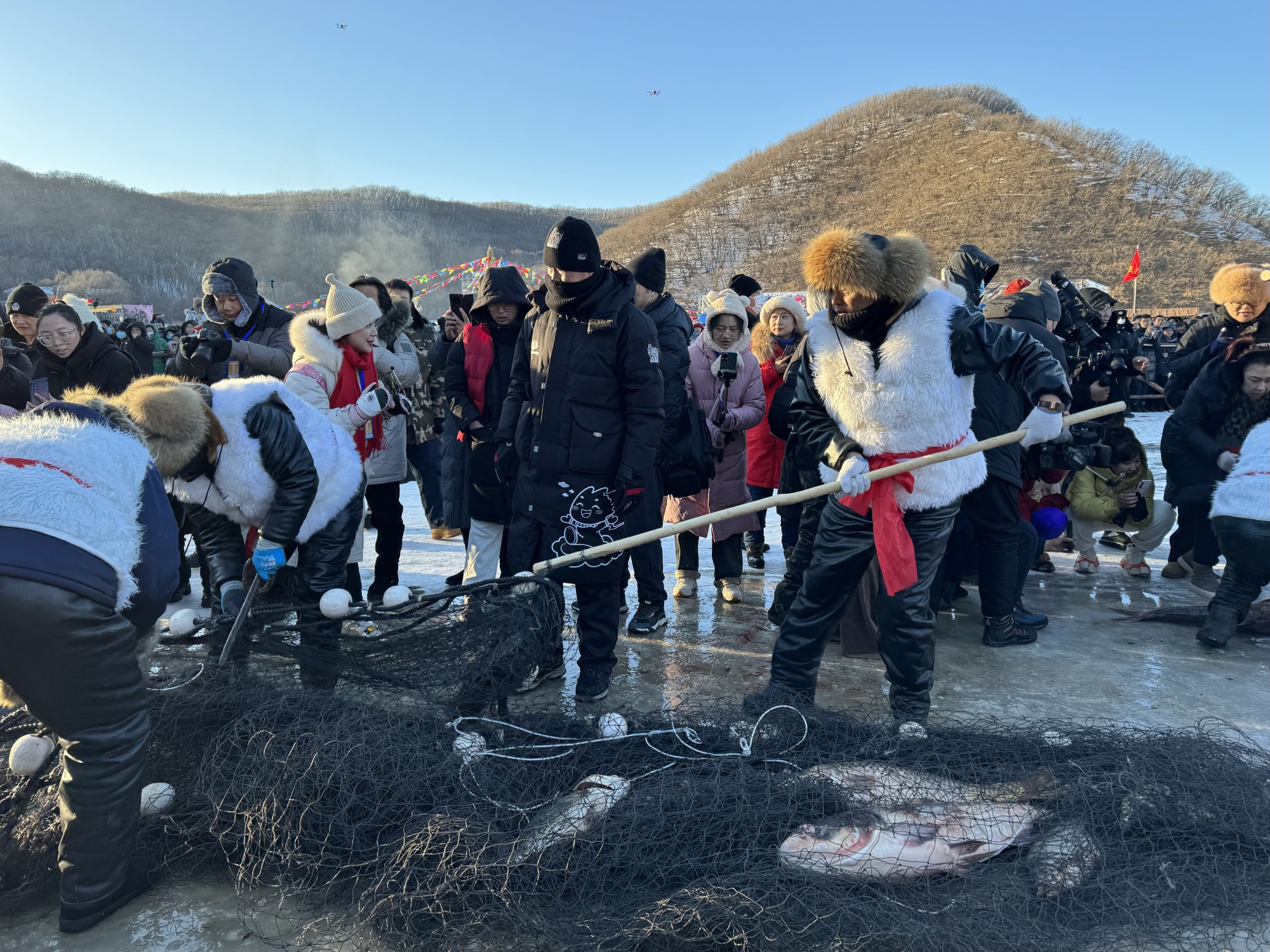 CNR Net Mudanjiang January 15 News (Reporter Ma Junwei) The millennia-old and mysterious fishing and hunting culture, including rituals like "Lake Worship," "Net Awakening," "Farewell Toast," and "Harvest Celebration," was showcased once again; the spectacular scene of silver carp and koi leaping out of Jingpohu Lake reappeared...