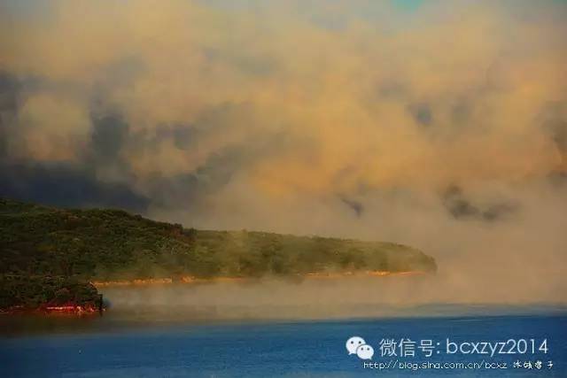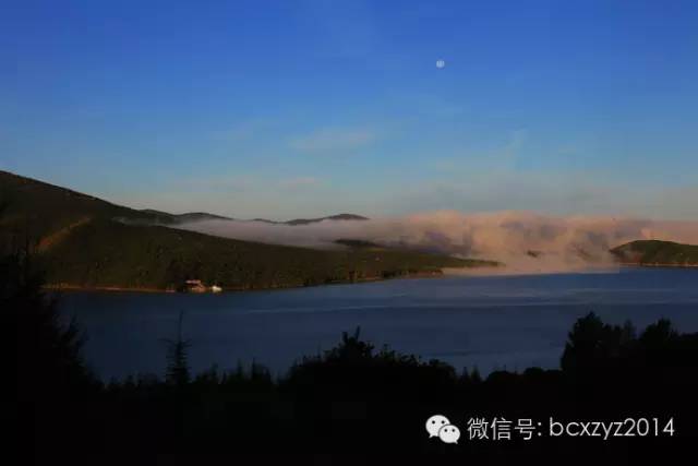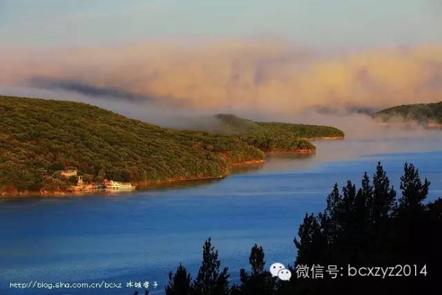 镜泊三日,那条山路就成了我们观赏镜泊湖最佳的地点,看云雾在湖上氤氲,赏霞光漫漫地飘逸,一会湖水是淡淡的浅蓝,一会湖水变得蔚蓝,它们随着天气的色彩变幻着,而不变的是一如既往的平静,正如它如镜一般的湖泊之名,静静地沉睡在高山上宛如天池一般的“高山公园”。