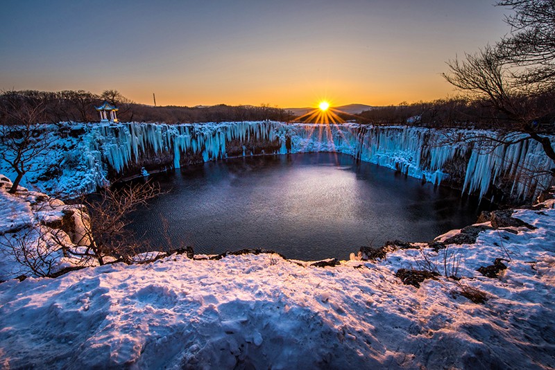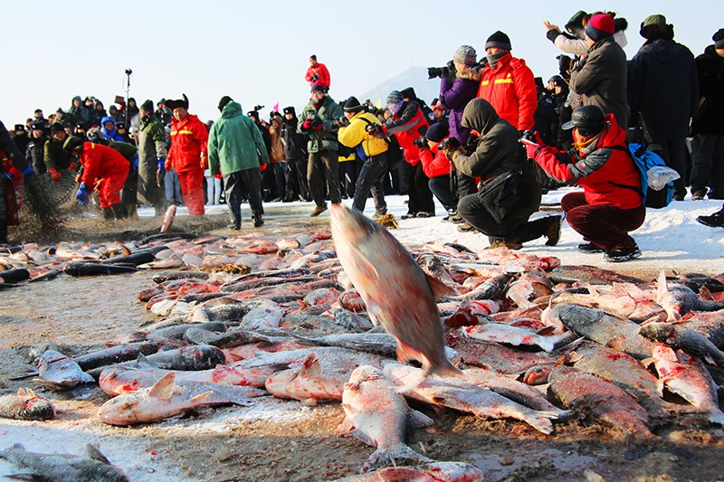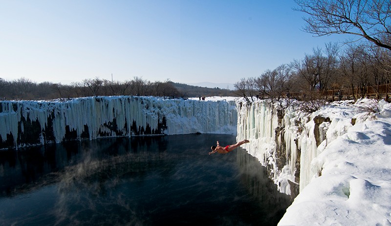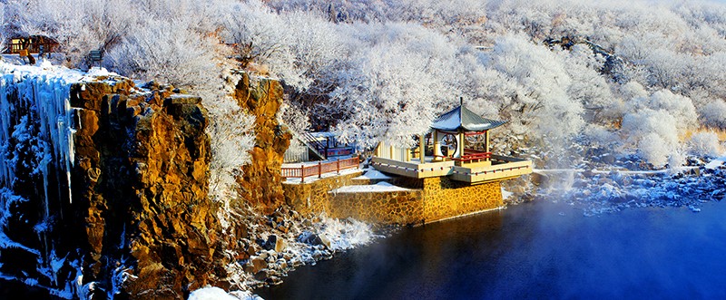 冬季的镜泊湖是冰雪的王国,游览重点在于领略“冰瀑”奇观、镜泊湖冬捕季和静谧的冬日盛景。12月至次年2月,湖面完全封冻,吊水楼瀑布凝结成巨大的冰瀑,高达20余米,宽逾百米,晶莹剔透如白玉雕琢,冰瀑下方还会形成形态各异的冰柱、冰笋。此外,封冻的湖面成为天然冰场,体验“镜泊湖·渤海雪国冬捕季”的民俗表演、非遗展示等,亲身体验小网挂鱼、冰下探鱼等互动活动,同时还可体验滑冰、冰车等冰雪项目。白雪覆盖的湖面与山林浑然一体,偶尔有飞鸟掠过,打破冬日的静谧,构成一幅纯净的北国雪景图。