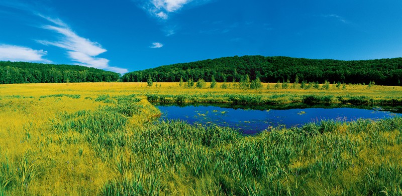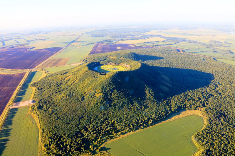 中国五大连池世界地质公园位于黑龙江省中北部,地处小兴安岭山地向松嫩平原的过渡地带,总面积为790.11 平方千米。主要地质遗迹有:14座孤峰状火山、11座盾形火山和8座岩渣锥火山;800多平方千米的熔岩台地上,河流、湖泊星罗棋布;多处天然冷矿泉出露地表,这里的铁硅质重碳酸钙镁型矿泉水与法国的维希矿泉、俄罗斯北高加索矿泉并称为“世界三大冷泉”。