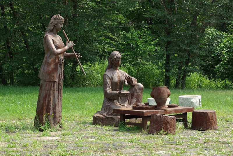 渤海园占地10000多平方米,园内建有“渤海民族风情组雕”、“护法”、“渤海国兴亡史长卷浮雕”、“大祚荣园雕”和“自荐乐园”。进入渤海园,能够亲身体验到一千二百多年前,渤海国靺鞨民族的风土人情。渤海民族风情组雕,系铸铁质,作品通过写真的笔法,展示出古老的靺鞨族的民风民俗。护法雕塑由火山岩雕琢成的石灯塔与用铸铁铸造成的7位人物组成的。石灯塔,又名石灯幢,系渤海镇兴隆寺内石灯塔的仿制品,原件已有一千二百多年的历史。渤海国兴亡史长卷浮雕系钢砼结构,高2米,长达20米。大祚荣像系花岗岩雕塑,高8米,重30多吨。此雕塑展示了骁勇彪悍的大祚荣,被唐王朝册封为左骁卫大将军时的英姿。