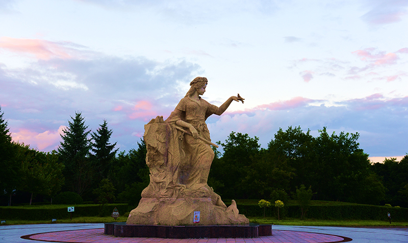 红罗女文化园于2004年开始选项论证,沈阳鲁迅美术学院环境艺术总公司设计并承建,于2006年全部竣工。红罗女文化园,选址在瀑布胜景区,位于观瀑桥的北侧。占地23000 平方米。其总体创意是把镜泊湖风景名胜区的三个组成部分——百里长湖景区、火山地质景区和渤海故国景区,千百年厚重的文化积淀,用雕塑的形式展示出来。