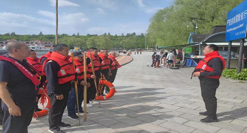 5月16日,镜泊湖管委会联合镜泊湖海事处、牡丹江镜泊湖观光船旅游有限责任公司,在镜泊湖大庙水域开展水上应急演练,以“客船设备失灵+人员落水”为模拟场景,实战检验协同救援效能。