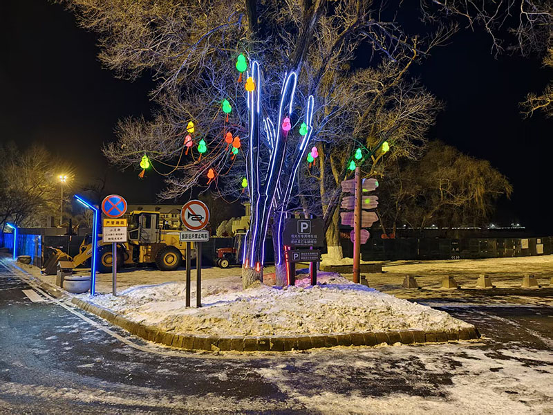 为响应牡丹江市冬季冰雪旅游“百日行动”,园林环卫中心积极落实镜管委党工委的工作部署,成立了景区冬季亮化工作领导小组,具体负责灯光亮化的指导、协调、检查、综合推进等工作。安排人员到哈尔滨、沈阳等地进行学习考察,不断完善亮化设计方案。从景区北门至瀑布、从渤海园至少奇路、再到山庄,以瀑布为重点,点、线、面相结合,一区域一主题、一路段一特色,打造了景区冬季夜间旅游灯光亮化的视觉盛宴。
