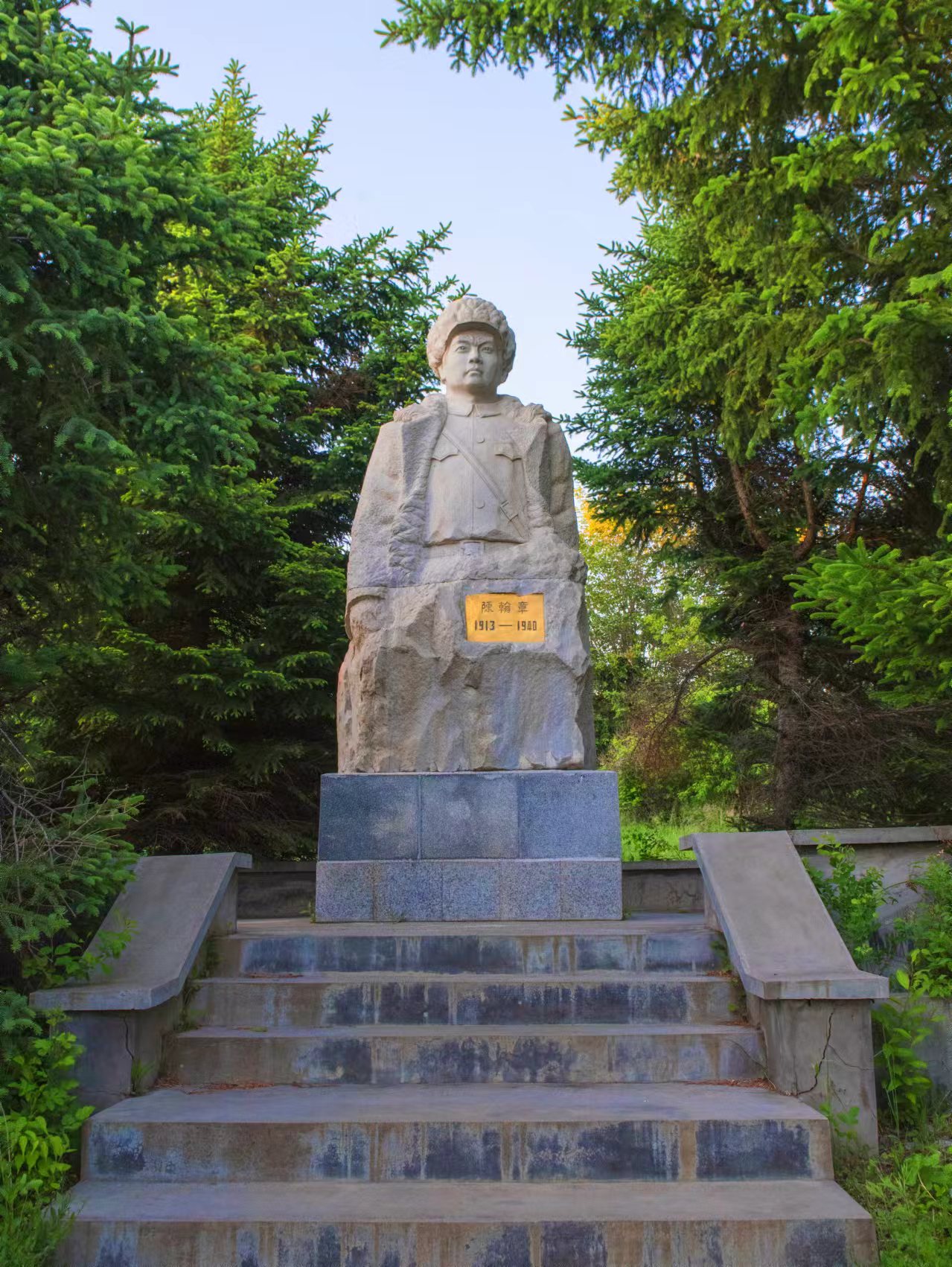 从镜泊湖南顺着宁安敦化的公路往南,走到松乙桥南不远,在弯沟村西山坡脚下,就是抗日英雄陈翰章的牺牲地。