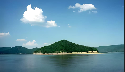 422米,呈不规则圆形,形状颇像一个道士帽落入湖中,以形定名。岛上古木葱郁,泛绿叠翠,花草丰茂,幽深怡静。